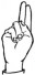 На ћирилици написано УМИЉЕН ГАВРИЛОВИЋ састоји се из 16 слова [?]. Исписано ћириличном једноручном азбуком за глувонеме: